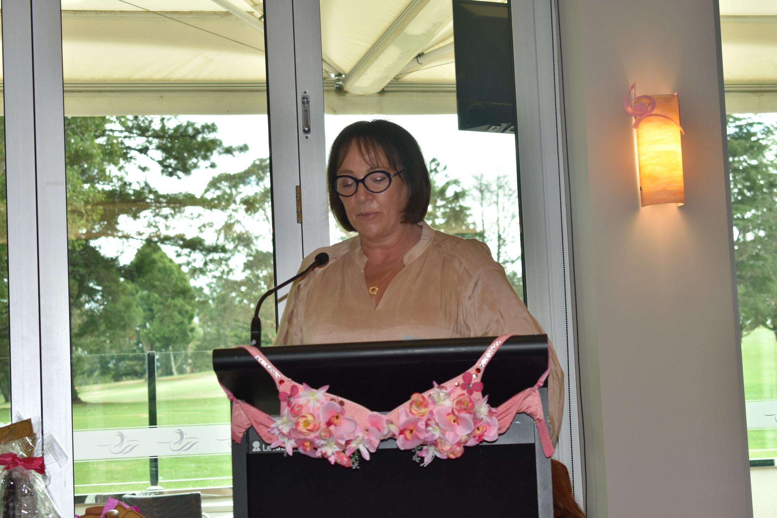 Afterwards, all the golfers and many other guests gathered for lunch in the Function Room of the Country Club, where we heard from our guest speaker, Ms Leslie Gilham from Breast Cancer Trials, Australia. Raffles, a spinning wheel, local produce and handmade items were on offer. The auction, however, was the highlight of the day, not only for the huge amount of money raised, but for the laughs and jokes that keep us all entertained by our wonderful auctioneer, Carmen Christie, and her assistant Jo De Jong.